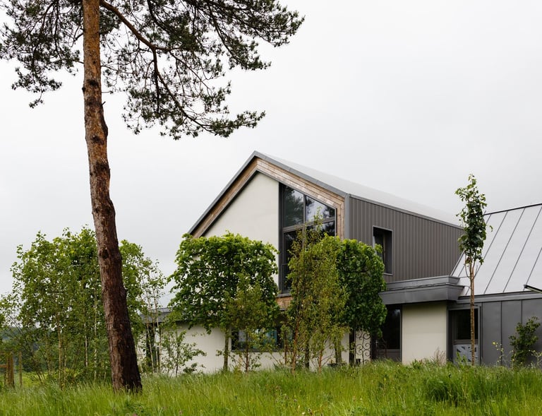 4 Bed new timber frame build house with with separate office, four car garage, and refurbishment and creation of guest annexe and stables. Paragraph 84 design